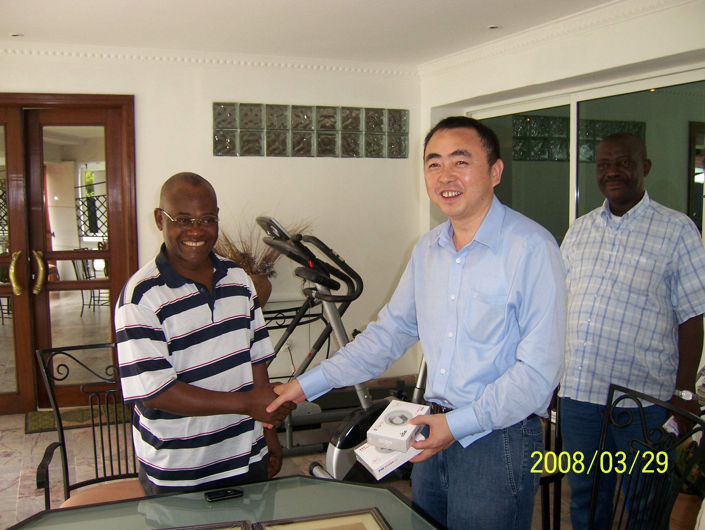 29日,陳董事長(zhǎng)會(huì)見(jiàn)了剛果(金)財(cái)政部部長(zhǎng),雙方就進(jìn)一步深化和擴(kuò)大工程領(lǐng)域的合作進(jìn)行了友好會(huì)談,并共同舉杯預(yù)祝恩安扎里項(xiàng)目合作成功。剛果(金)財(cái)政部部長(zhǎng)還愉快地接受了陳董事長(zhǎng)贈(zèng)送的禮物。