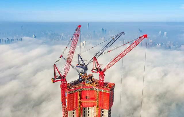 武漢綠地中心項(xiàng)目”空中造樓機(jī)“