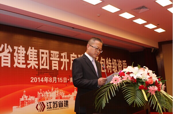 8月15下午,江蘇省建集團(tuán)晉升房建總承包特級(jí)資質(zhì)慶祝大會(huì)在南京湯山御豪溫泉酒店隆重舉行。江蘇省住建廳副廳長(zhǎng)、省建管局局長(zhǎng)徐學(xué)軍,省住建廳副巡視員紀(jì)迅,省住建廳有關(guān)處室負(fù)責(zé)人賀志良、曹達(dá)雙、王懷、李波、李震,有關(guān)金融機(jī)構(gòu)負(fù)責(zé)人,部分公司老領(lǐng)導(dǎo),集團(tuán)合作伙伴代表,以及集團(tuán)機(jī)關(guān)中層及以上干部、各基層單位有關(guān)負(fù)責(zé)人150人出席大會(huì)。集團(tuán)公司總裁仇天青主持會(huì)議。