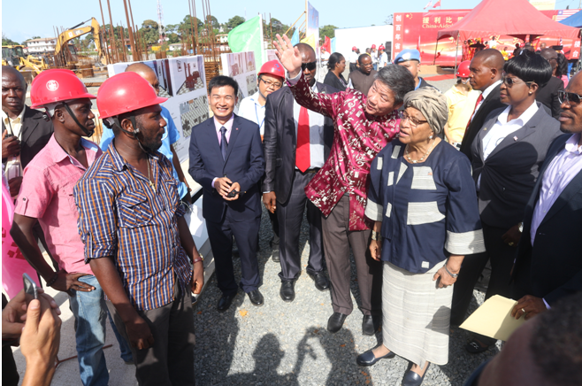 利比里亞總統(tǒng)出席援利政府辦公樓開工儀式